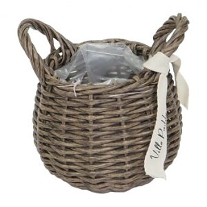※お届け地域により、別途運賃がかかる場合やお届けできない場合がございますので、お問い合わせ下さい。 持ち手付きのラタンバスケットです。内側にビニールが付いているので観葉植物の土で汚れたり水で濡れたりすることを防ぐことが