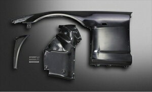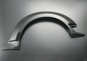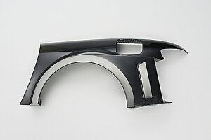 TYPE-GTワイドボディエアロシステムの左リアオーバーフェンダーです。後部のアウトレットダクトから、タイヤより発生した乱流を排出する効果があります。ノーマルボディの上から被せるように装着します。給油口用のフューエルカバーは付
