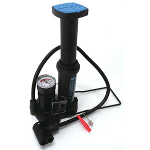 空気圧が一目でわかるインジケータ付フットポンプ空気圧表示がKpa(キロパスカル)なのでわかりやすい。(適正空気圧はタイヤサイズによって異なります。大抵はタイヤ側面に表示されています。)アダプターを使用すると用途が広がります。自