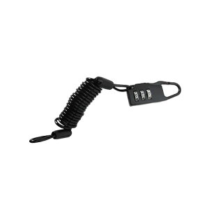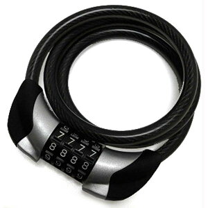 キー忘れの心配なし、4桁ダイヤルロック。 好きな番号に設定できる。 サイズ(約):長さ90cm×ワイヤー太さ18mm カラー:ブラック