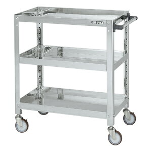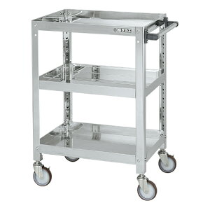 【商品説明】●「支柱突き合わせ方式」により、ぐらつきが無く非常に堅牢です。SUS430製ですのでサビや汚れに強いワゴンです。棚板はすべて皿型・フラット型に組み替えが可能です。●導電性ゴム車を使用していますので、静電気を放出し