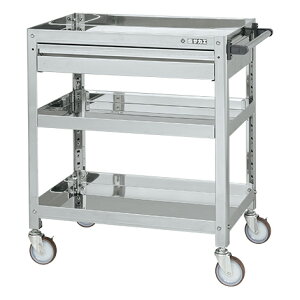 【商品説明】●「支柱突き合わせ方式」により、ぐらつきが無く非常に堅牢です。SUS304製ですのでサビや汚れに強いワゴンです。棚板はすべて皿型・フラット型に組み替えが可能です。●ナイロンウレタン車を使用していますので、耐油性、