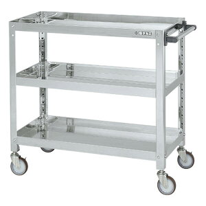 【商品説明】●「支柱突き合わせ方式」により、ぐらつきが無く非常に堅牢です。SUS304製ですのでサビや汚れに強いワゴンです。棚板はすべて皿型・フラット型に組み替えが可能です。●ナイロンウレタン車を使用していますので、耐油性、
