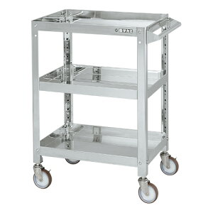 【商品説明】●「支柱突き合わせ方式」により、ぐらつきが無く非常に堅牢です。SUS304製ですのでサビや汚れに強いワゴンです。棚板はすべて皿型・フラット型に組み替えが可能です。●ナイロンウレタン車を使用していますので、耐油性、
