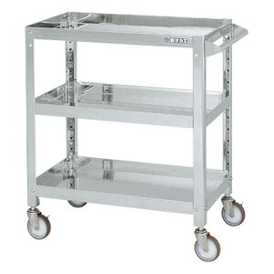 【商品説明】●「支柱突き合わせ方式」により、ぐらつきが無く非常に堅牢です。SUS430製ですのでサビや汚れに強いワゴンです。棚板はすべて皿型・フラット型に組み替えが可能です。●導電性ゴム車を使用していますので、静電気を放出し