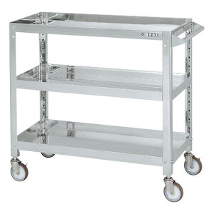 【商品説明】●「支柱突き合わせ方式」により、ぐらつきが無く非常に堅牢です。SUS430製ですのでサビや汚れに強いワゴンです。棚板はすべて皿型・フラット型に組み替えが可能です。●ナイロンウレタン車を使用していますので、耐油性、