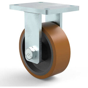 特長 ●車輪に弾力性があるポリウレタンを使用しているため、走行音が静かです。 ●プレートと本体の取付部は、キングピンを使用しない特殊な構造です。 ●旋回軸のがたつきが少なくスムーズに移動します。 ●本体が鋳造かつ肉厚で剛性