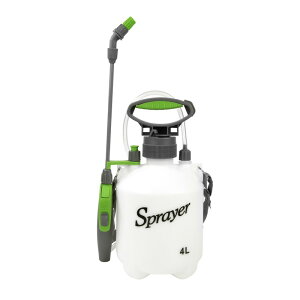 圧力式で、瞬間、連続噴霧が可能です。 連続噴霧出来るレバーロック機能付きです。 庭木・草花の消毒や殺虫の為の薬液の噴霧に最適です。 扇状に噴霧でき除草剤噴霧に最適な墳口付です。 ●容量:4L ●ノズル長:30cm ●噴霧目安(霧):約1m