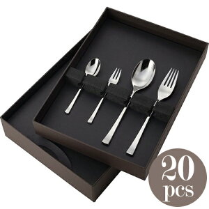 【特徴】 ●シンプルでいてリズミカルな線が特徴のカトラリー。 【セット内容】 デザートナイフ、デザートフォーク、デザートスプーン、ティースプーン、ヒメフォーク【各5本】 【商品詳細】 箱サイズ:約213×291×93mm 材質:18-...