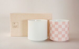 miyama kooci(格子)ペアロックグラスギフト 270cc (磁白 朱赤 各1) 格子文様柄のペアロックグラスのギフトです。磁白と朱赤のセットで揃えました。 白磁の素の美しさの上に伝統と現代を融かし合う格子文様を纏う器のシリー...