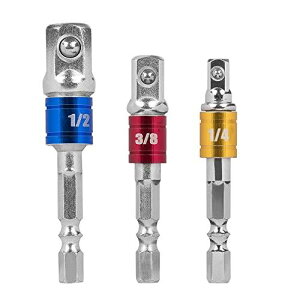 アダプター - インパクトドライバーに最適!六角軸 ⇒ ドライブ角1/4” 3/8” 1/2” SAS-3 (3本組,シルバー)差込角多?性:1/4インチ(6.35mm)、3/8インチ(9.5mm)、1/2インチ(12.7m...