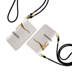 ショルダー付き手帳型スマホケース。シームレスな全面デザイン(内側は落ち着いたオフホワイト)。外側は高品質の人工革を使用。内側にはスマホを装着するケースが付属。機種専用のカメラホール仕様でケースを装着したまま。