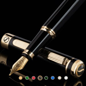 Scriveiner 最高級 プレミアム 万年筆 (黒) 魅力的な美しさ 24K金仕上げ Schmidt 18K金メッキペン先 (細) 男性にも女性にも最適 プロフェッショナル 重役 職場 上品な万年筆ギフトセット...