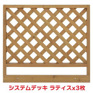 システムデッキに取り付けられるオプションパーツラティス【特徴】・システムデッキ用のラティスパーツ【仕様】・サイズ:約幅90x奥行7x高さ80cm・重量:約3.8kg・材質:天然木・カラー:ナチュラル・入数:3
