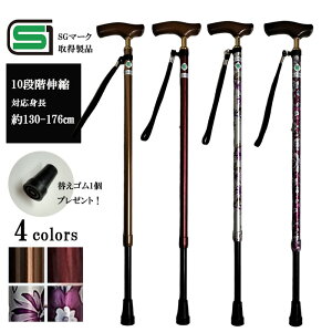杖 介護 おしゃれ SGマーク 伸縮 替えゴム1個付 70代 80代 ステッキ 10段階伸縮 スリムネック 男性 女性 軽量 SGマーク認定取得商品 握りやすくデザイン性に優れたスリムネッ...