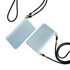商品特徴・ショルダー付き手帳型スマホケース・シームレスな全面デザイン(内側は落ち着いたオフホワイト)・外側は高品質の人工革を使用・内側にはスマホを装着するケースが付属・機種専用のカメラホール仕様でケースを装着したまま