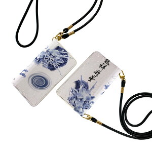 商品特徴・ショルダー付き手帳型スマホケース・シームレスな全面デザイン(内側は落ち着いたオフホワイト)・外側は高品質の人工革を使用・内側にはスマホを装着するケースが付属・機種専用のカメラホール仕様でケースを装着したまま