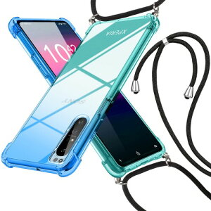 Xperia 1 II ケース クリア SO-51A SOG01 ケース 肩掛け 斜めかけカバー 薄型 グラデーション色 ショルダー tpu 耐衝撃 透明 長さ調整可能 縄掛けケース おしゃれ 黄変防止防塵一体型...