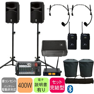 ライブやイベント、カラオケなど広い用途にお使い頂けます! YAMAHA ( ヤマハ ) STAGEPAS400BT SOUNDPURE ワイヤレスマイク 4本 (ハンド2本とタイピンマイク1式とヘッドセットマイク1式)...