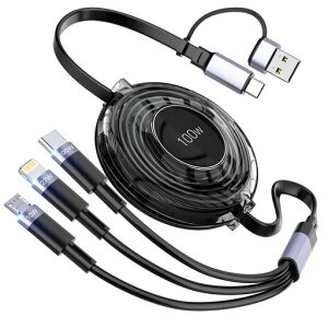 【100W充電ケーブル】充電コード3in2のUSBCポートは最大100Wの急速充電、Lightningポートは最大27Wの充電、microusbは最大10Wの急速充電に対応する。30分でiPhone16を50%...
