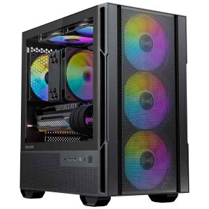 フルメッシュのフロントパネルと4基のアドレサブルRGBファンで冷却性能に優れたミニタワー型PCケース■大きなエアフローを生むフロントメッシュパネル■内部がよく見える強化ガラス製サイドパネル■microATX、Mini-ITXマザーボー...