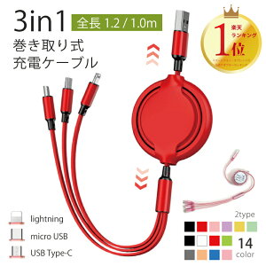 ◆Lightning/ Micro USB / USB Type-C が1本になった3in1充電ケーブル。◆充電周りをすっきり収納できます。◆コンパクトなので持ち運びもノンストレスでらくらく。◆断線防...