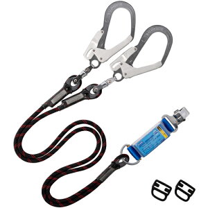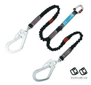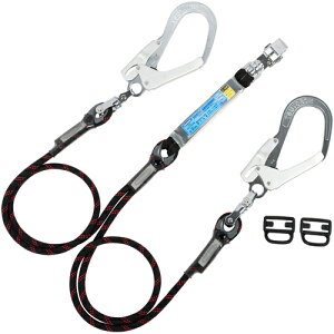 商品情報 商品の説明 仕様:ハーネス用2股ノビロンランヤード(2丁掛け)のみ色:黒ノビロンサイズ:幅32×長さ(収縮時1200~1300mm、伸長時1700mm)×2本構造物側フック: FS-93SV(軽量・SV回転)×2個人体側:シ...