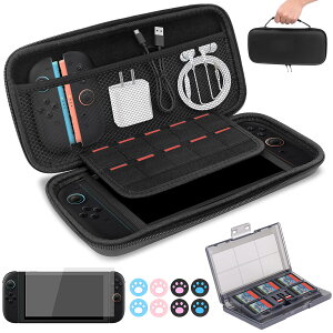 SWITCH 2 ケース+ 1枚 HDガラス強化保護フィルム Ninten-do Switch 2 用 保護ケース カバー EVA 収納バッグ 防塵 防水 耐衝撃 軽量 全面保護型 持ち運び便利 (Black)...