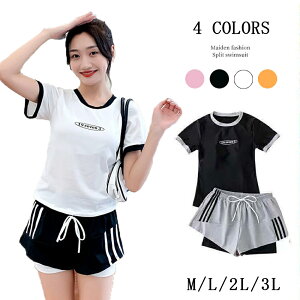 -55kg XL(2L) 推薦身長165-175cm推薦体重55-60kg ※商品名 スポーツ 水着 レディース 高校生 中学生 半袖トップス ハーフパンツ フィットネス水着 FITNESS 海やプールで...