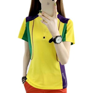 ハーフジップ 半袖 レディース 夏 トップス スタンドカラー カットソー ゆったり 大きいサイズ 薄手 吸湿 速乾 通気性 アウトドア スポーツ シンプル カジュアル スポーティ 青 赤 紫 ストライプ