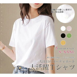 キーワード:Tシャツ レディース 半袖 涼しい 無地 夏用 トップス Uネック 大きいサイズ スポーツ ランニング◇素材:綿混紡 95%綿★大人の雰囲気を出すなら今年は断然オーバーサイズがおススメ!★シン...