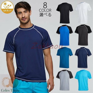 UPF50+ UVカット 大きいサイズ サーフィン ウェットスーツ インナー 水着 Tシャツ シュノーケリング 海 プール マリン スポーツ 体型カバー 水着 メンズ スイム Tシャツ 半袖 水着 スイムウェア...