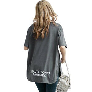 素材構成: 綿65%+ポリエステル35% ・サイドスリット×英字ロゴがデザインされたオーバーサイズTシャツ☆ スキニージーンズやワイドパンツ。ロングスカートとも合わせやすいトップスです。 ・裏地:なし 伸縮性:なし...