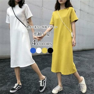 Tシャツワンピース 半袖 夏ファッション性と着心地の良さ兼ね備え夏ならではのカジュアルアイテムレディース半袖Tシャツワンピースコーデに馴染みやすい、飽きの来ないシンプルな無地デザイン吸湿性?通気性に優れ...