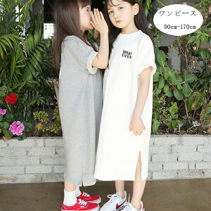 親子ペア Tシャツワンピース ロングTシャツ キッズ 半袖 ワンピース 女の子 レディース Tシャツワンピース ホワイト グレー 親子 子供から大人まで ママと娘 夏物 子供服 女性 Tシャツワンピース...