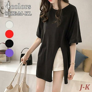 サイドスリットが余裕を生み出す シンプル 半袖Tシャツ登場した!シンプルなデザインなのでスキニーパンツやレギパン、デニム、ワイドパンツなど色々なアイテムとコーデで使えます。ストレッチの効いたTシャツ素材で着心地よくお洒落な