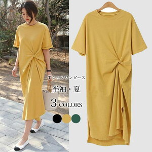 Tシャツワンピース 半袖 レディース ワンピース 夏ファッション性と着心地の良さ兼ね備え夏ならではのカジュアルアイテムレディース半袖Tシャツワンピース飽きの来ないシンプルな無地デザインに腰部分の立体設計がレイヤード感とアクセ