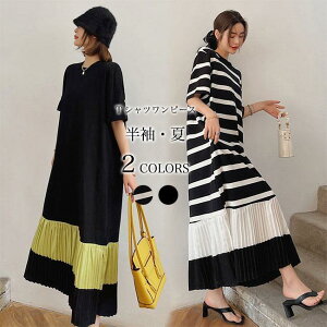ロングワンピ 夏 半袖 レディース Tシャツワンピース Aライン ワンピース 薄手ファッション性と着心地の良さ兼ね備え夏ならではのカジュアルアイテムレディース半袖Tシャツワンピース吸湿性?通気性に優れ...