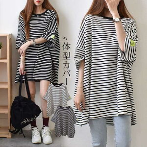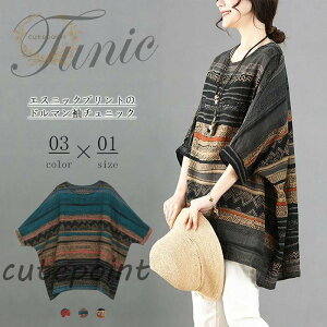 ドルマンスリーブ チュニックtシャツ ボーダー tシャツ チュニック オーバーサイズtシャツ プルオーバー レディース トップス 七分袖 カットソー エスニック ナチュラル tシャツワンピ ゆったり 体型カバー...