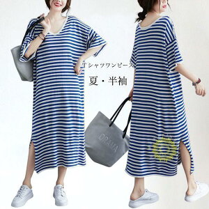 半袖 Tシャツワンピース 夏 レディース ボーダーファッション性と着心地の良さ兼ね備え夏ならではのカジュアルアイテムレディース半袖Tシャツワンピース吸湿性?通気性に優れ、サラサラの薄手生地が肌に優しいゆったりとしたシルエットで