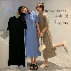 Tシャツワンピース 夏 レディース 半袖ワンピースファッション性と着心地の良さ兼ね備え夏ならではのカジュアルアイテムレディース半袖Tシャツワンピースコーデに馴染みやすい、飽きの来ないシンプルな無地デザイン吸湿性...