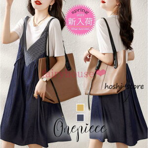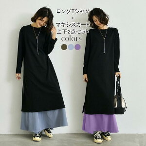 Tシャツワンピ マキシスカート 2点セット レディース 重ね着 ワンピース ロングTシャツ チュニック 色切り替え ロングワンピ 長袖 ドレス 春 秋 ロングスカート Aラインスカート レトロ セット...