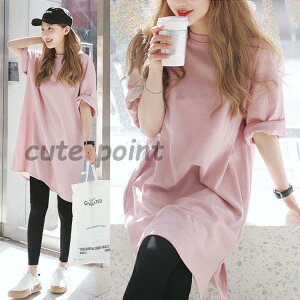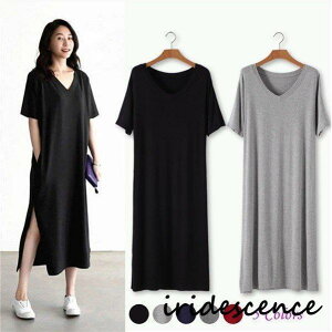 ワンピース レディース 夏 半袖 ボーター スリット ロング丈 Tシャツワンピース ルームウェア 体型カバー プルオーバー 寝巻き 大きいサイズ ゆったり 透けない シンプル 春 秋 【品 番】hao...
