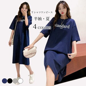 Tシャツワンピース レディース 半袖ワンピースファッション性と着心地の良さ兼ね備え夏ならではのカジュアルアイテムレディース半袖Tシャツワンピース英字プリント付き、飽きの来ないシンプルデザイン吸湿性?通気性に優れ...
