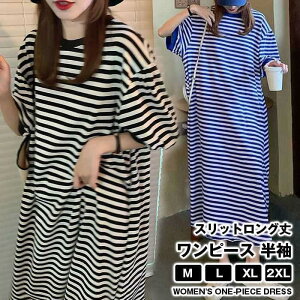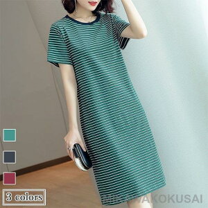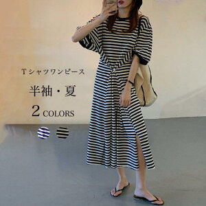ワンピース レディース ボーダー柄 縞柄 Tシャツワンピース 半袖ワンピース トップス 夏 クルーネック ゆったり ゆるワンピース サマーワンピース 半袖 使いやすい無地とアクセントに最適なボーダー柄...