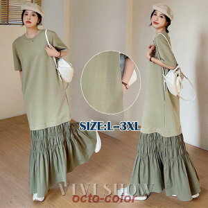 ■商品名ワンピース レディース 40代 キレイめ マキシ丈ワンピース ロングTシャツ 春夏 無地 半袖ワンピース ゆったり オシャレ 着痩せ 大きいサイズ 韓国風 30代 50代■■サイズM/L/LL...