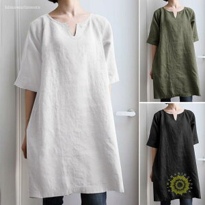 ワンピース 夏 膝丈 レディース 半袖 カジュアル チュニック ワンピ tシャツ ロング カットソー ルームウェア 体型カバー おしゃれ かわいい ゆったり ヘンリー ネック:chenlei001カラ...