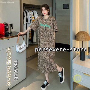 ロングワンピース きれいめ レディース 半袖 夏 春 秋 大人 ロング丈 膝丈 Tシャツ ワンピース 大きいサイズ ヒョウ柄 シンプル マ