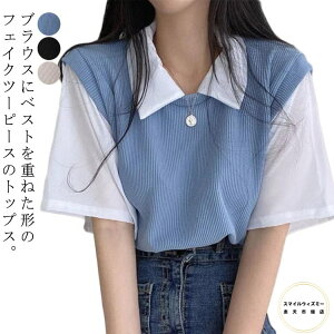 1枚でレイヤードが完成。洒落見え抜け感トップス[2025 SUMMER COLLECTION][涼感]配色レイヤード風ヘンリーネックニットトップス。レイヤードスタイルを1枚で楽しめる、ヘンリーネックのニットトップス。