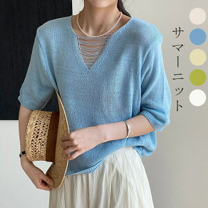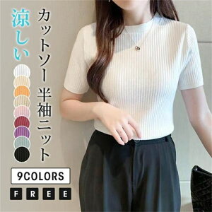 カットソー 半袖ニット レディーストップス ニット Tシャツ 半袖